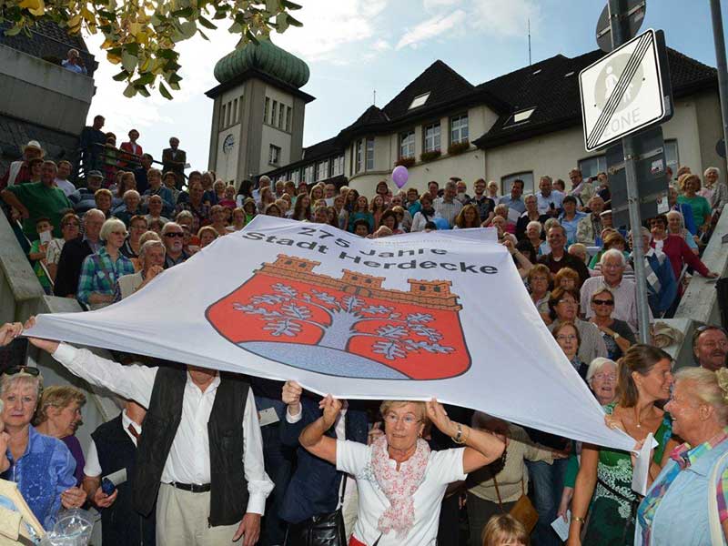 Die Bürgersingaktion vor dem Herdecker Rathaus